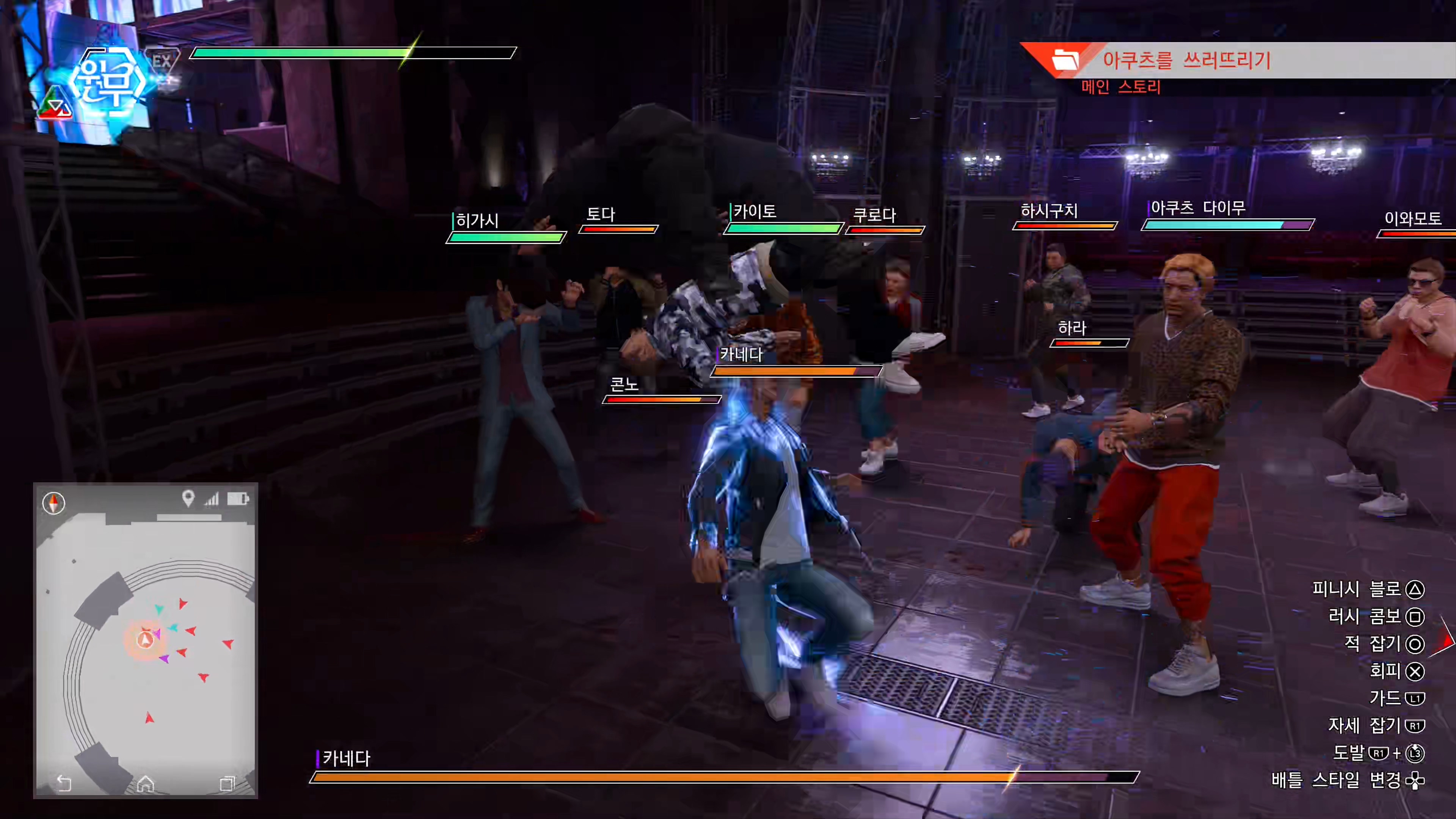 또 여기는 전투가 빡센 구간입니다. 보스전이 몇 번 있는데 형사도 있고, 나이트클럽 그 부두목 같은 애랑도 하고.. 메인 퀘스트 상 전투를 필수적으로 거치는 곳이 많은 편이었던 것 같습니다. 저는 스토리 위주라 쉬움으로 했기 때문에 어떻게 깨긴 했지만 한 번에 많은 적이 등장하기 때문에 보통으로 하는 분들은 힘들었을 수도 있을 것 같습니다.
