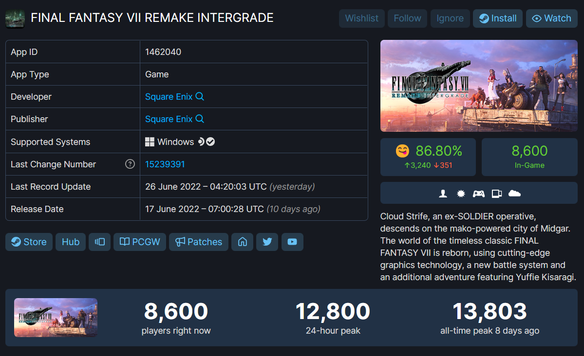FINAL FANTASY VII REMAKE INTERGRADE (App 1462040) · SteamDB