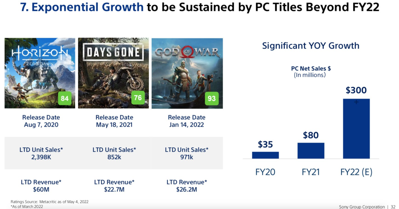 PlayStation Reveals PC Sales for God of War, Horizon: Zero Dawn, and Days Gone (vgchartz.com)