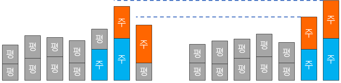 예를 들어, 한국 날짜 기준으로 단순히 여러 나라의 동접 수를 합쳐보면 왼쪽과 같이 나오고, 요일별로 조정해서 동접을 합쳐보면 오른쪽과 같이 나올 수 있습니다. 현재 확인할 수 있는 자료는 왼쪽과 같이 요일은 고려하지 않은 자료밖에 없기 때문에 실제로 주말과 평일의 정확한 동접자 수는 확인할 수 없는 셈입니다.