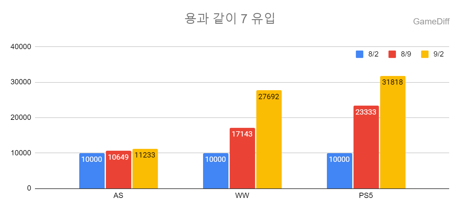 용과 같이 7이 플스 무료로 풀리면서 유저 수가 많이 증가했다는 글을 올린 적이 있습니다. 일주일 밖에 지나지 않았는데 130%나 증가해서 유저 수가 2배가 넘게 되었죠. 이제 배포 이후 한달이 지났고 시작할 사람들은 다 시작했을 테니 최종적으로는 어떻게 변했을지 살펴보겠습니다.