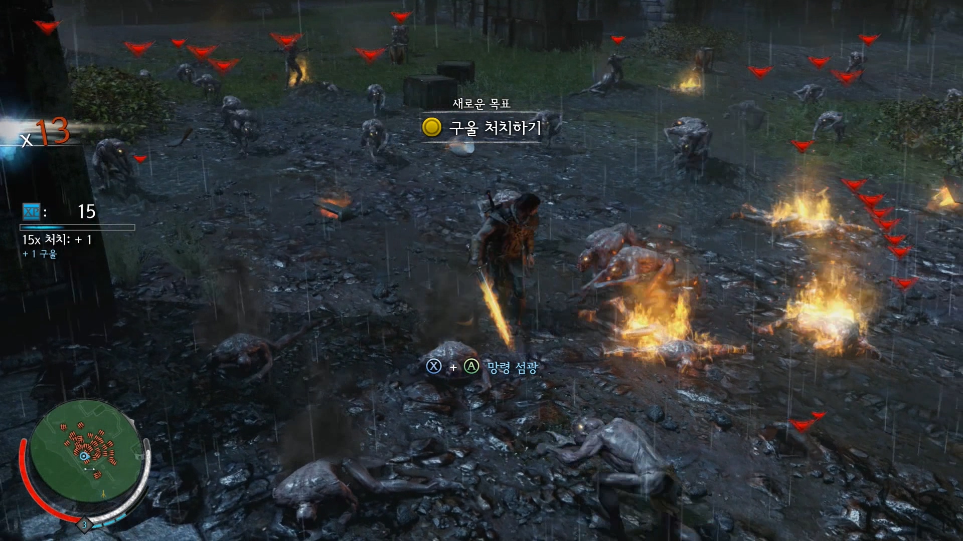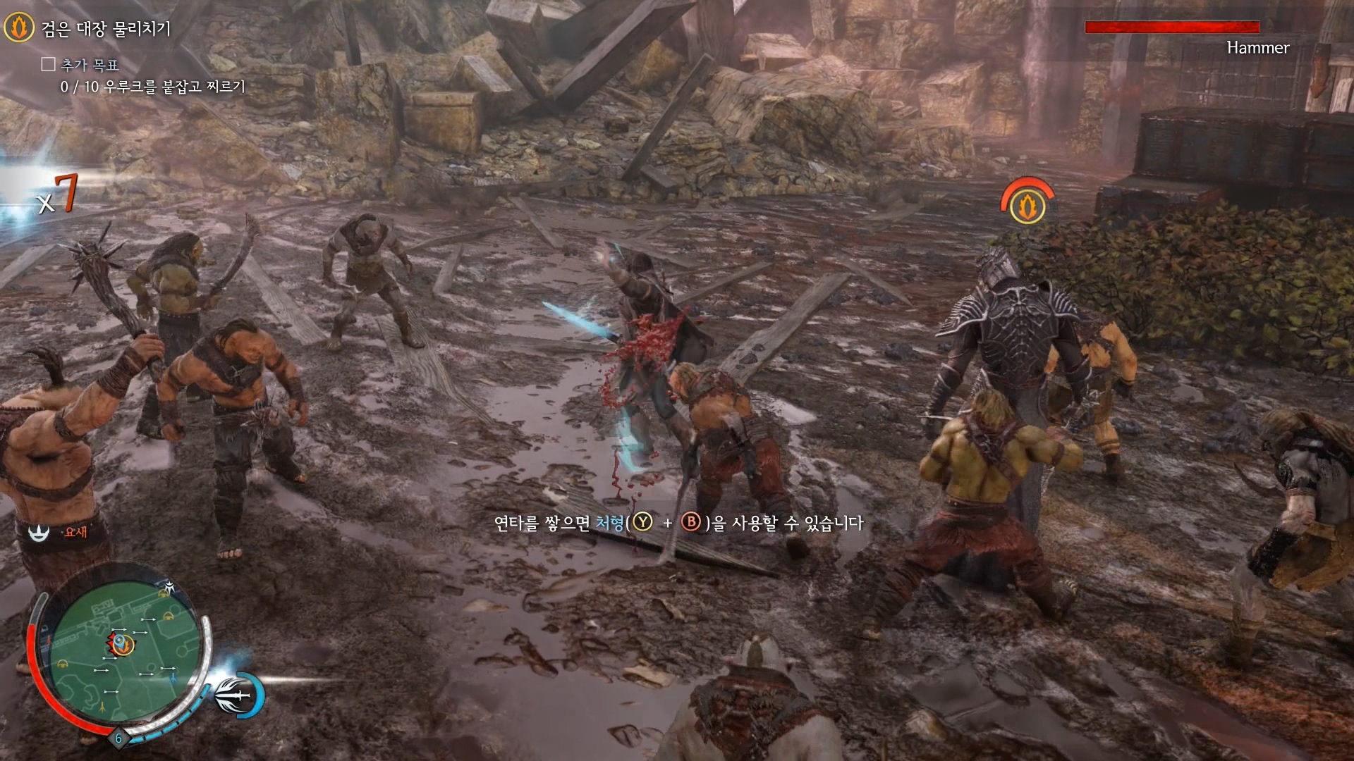 반지의 제왕에 프리플로우 전투 시스템을 접목시킨 액션 게임 쉐도우 오브 모르도르입니다. PS3, PS4 낀 세대 쯤 나온거 같은데 아직 한글 게임이 많이 없던 시절이라 좀 불완전한 유저 패치로 즐길 수 밖에 없었던 아쉬운 작품이죠.