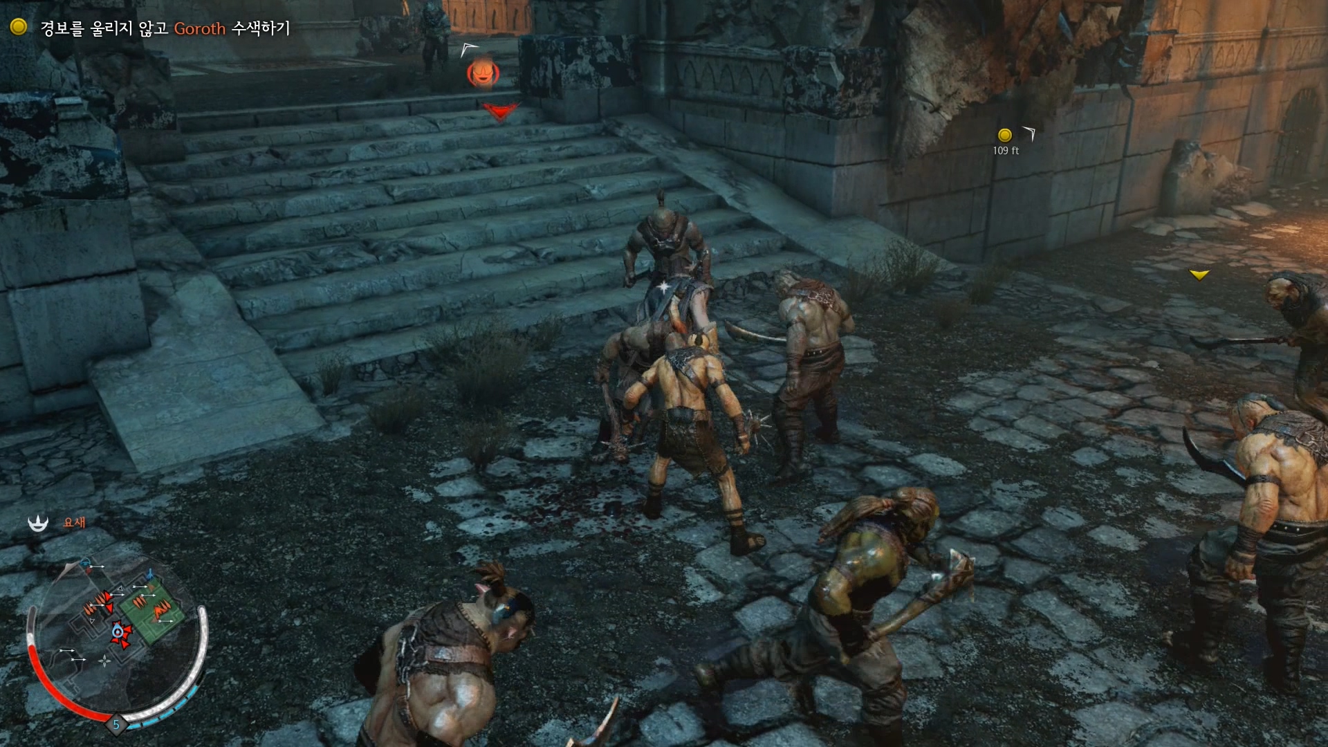 본격적으로 오크 무리와 빈번하게 싸우는데다 요새 쪽에서 싸우면 적이 수십마리 몰려드는 경우도 발생합니다. 필수 미션에서도 이런 상황이 생기기도 하죠. 암살 플레이를 잘 한다면 쉽게 넘어갈 수도 있지만 그냥 단순히 전투만 하고 싶은 사람들에게는 좀 불합리하다고 느껴질만큼 난이도가 오르는 편입니다. 거기다 보스몹인 해머를 잡을 때는 암살 같은 걸로 적 줄여놓기도 불가능합니다.