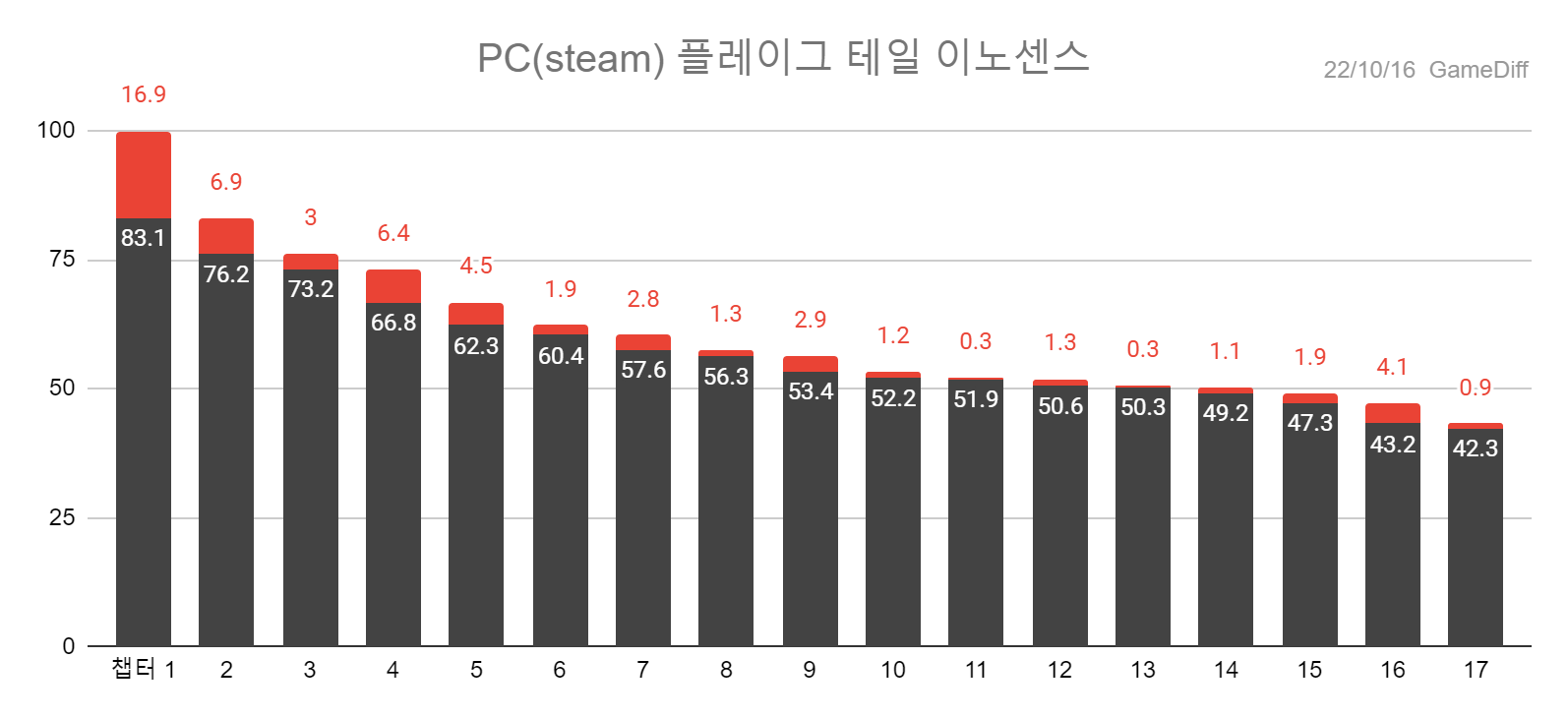 *차트의 세로축은 해당 업적(도전과제/트로피)의 클리어 율을 의미합니다.