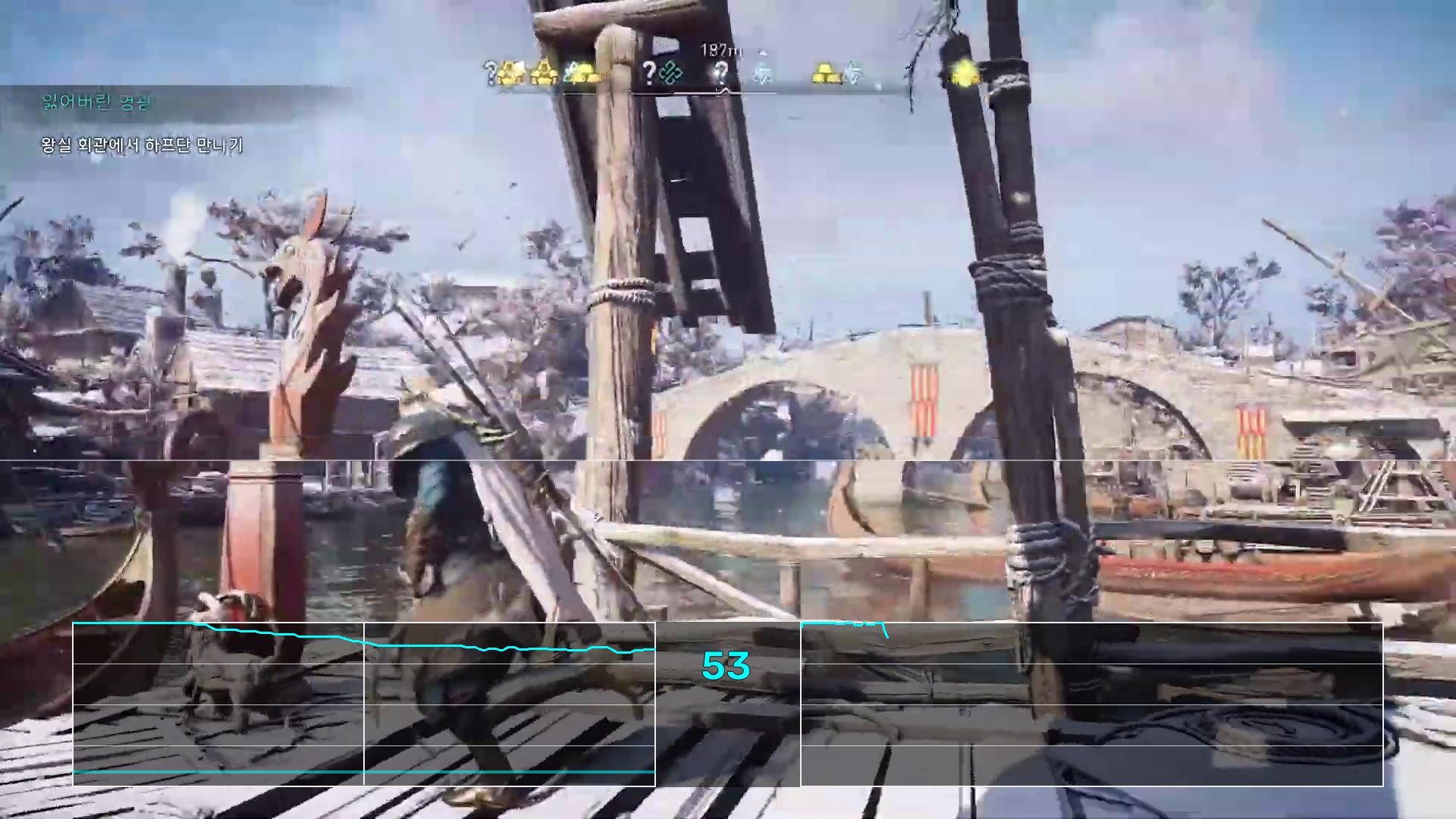 다른 부분을 보면 테어링이 확실하게 있는 곳도 테어링 표시가 안 되고 있음을 알 수 있습니다. 이렇게 확실한 것도 제대로 못 잡는 걸 보니 테어링 때문에 프레임이 떨어지는 것도 제대로 측정 안 된거다라고 봐도 되겠네요.