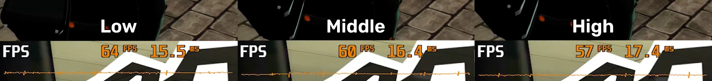 아래는 동일한 영상을 세팅만 다르게 하고 프레임을 측정한 화면입니다.