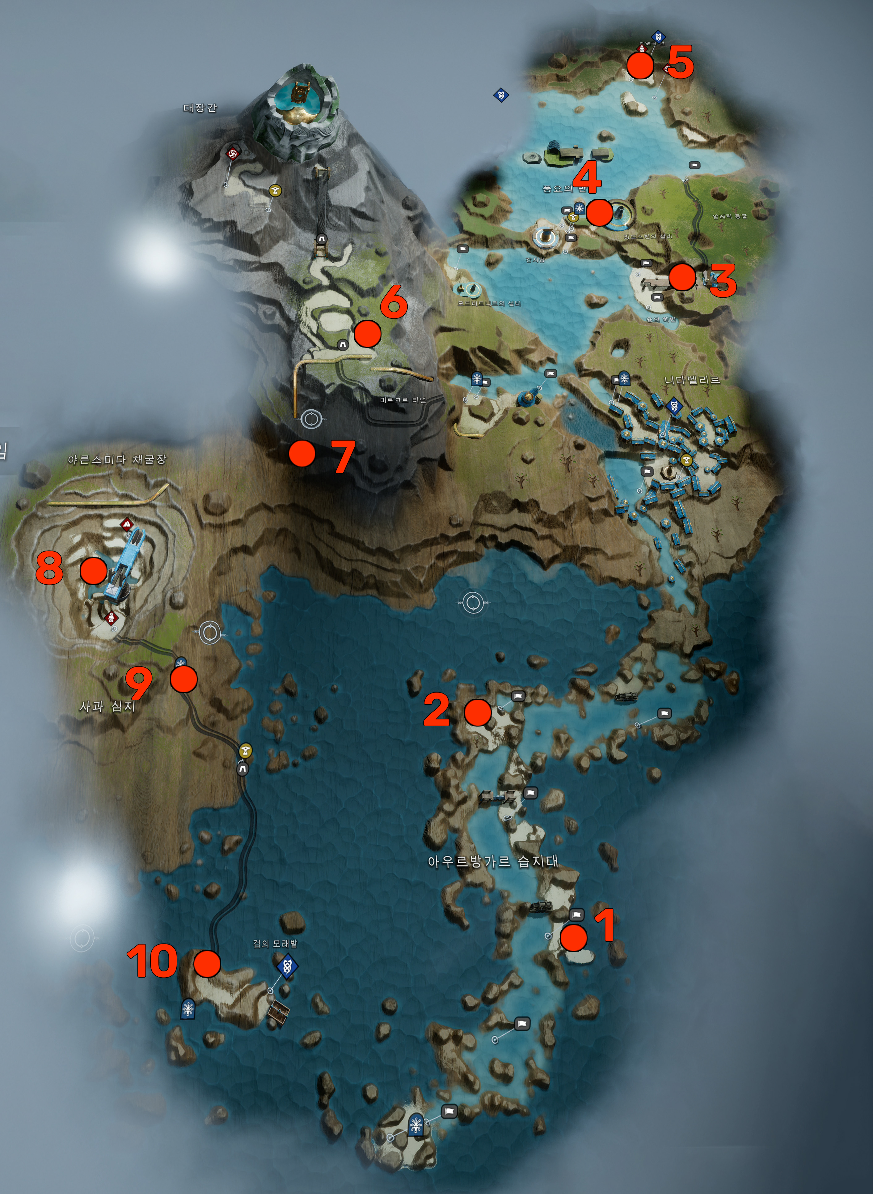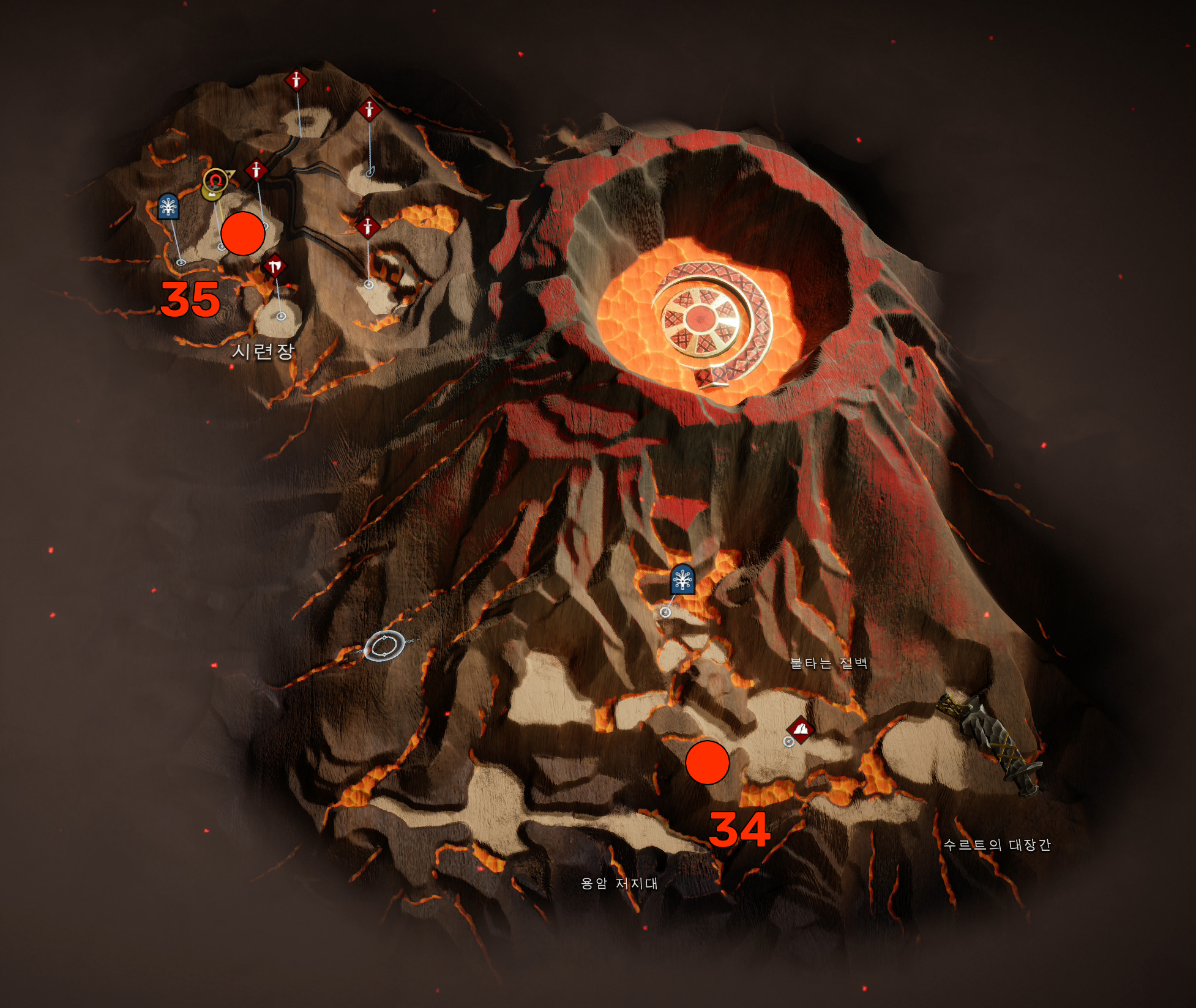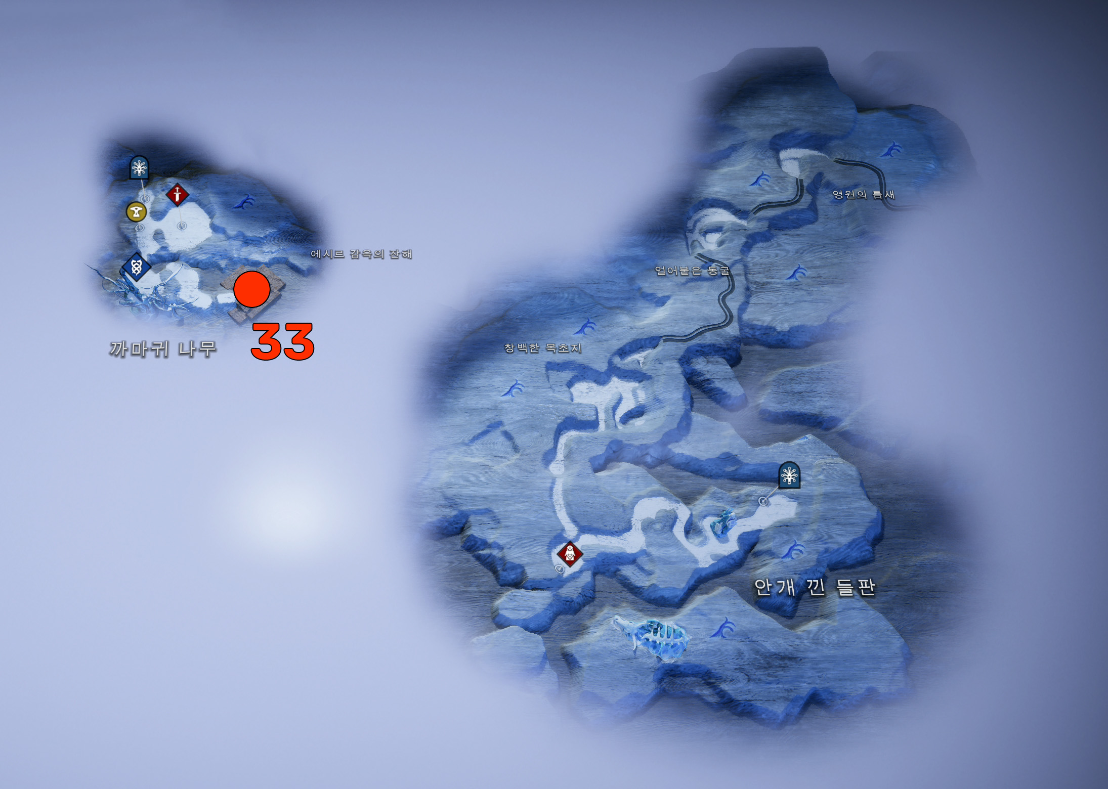 위치가 절벽 쪽에 있는 것처럼 보여서 헤맸는데, 저기 아래쪽으로 쭉 돌아서 동굴 같은 곳에 들어가셔야 합니다.
