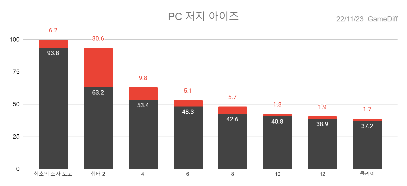 24일부터 신규 유입으로 인해 클리어율이 더 떨어지는 상황이 벌어지고 있어서 11/23자 기준으로 정리했습니다.