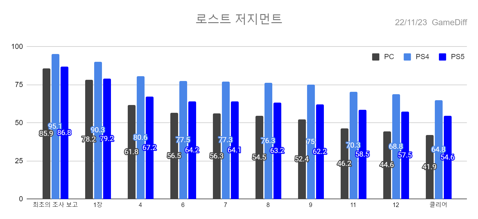 | [게임 정착과 이탈] PS5 라스트 오브 어스 파트 1 엔딩 비율 (0) | 2022.11.01 |