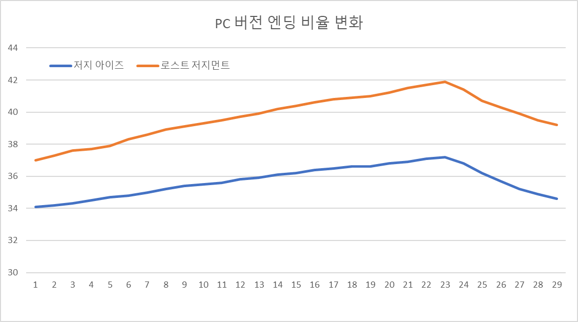 피씨로 와서는 플스보다 중간에 이탈하는 사람들이 훨씬 더 많아진 모습입니다.