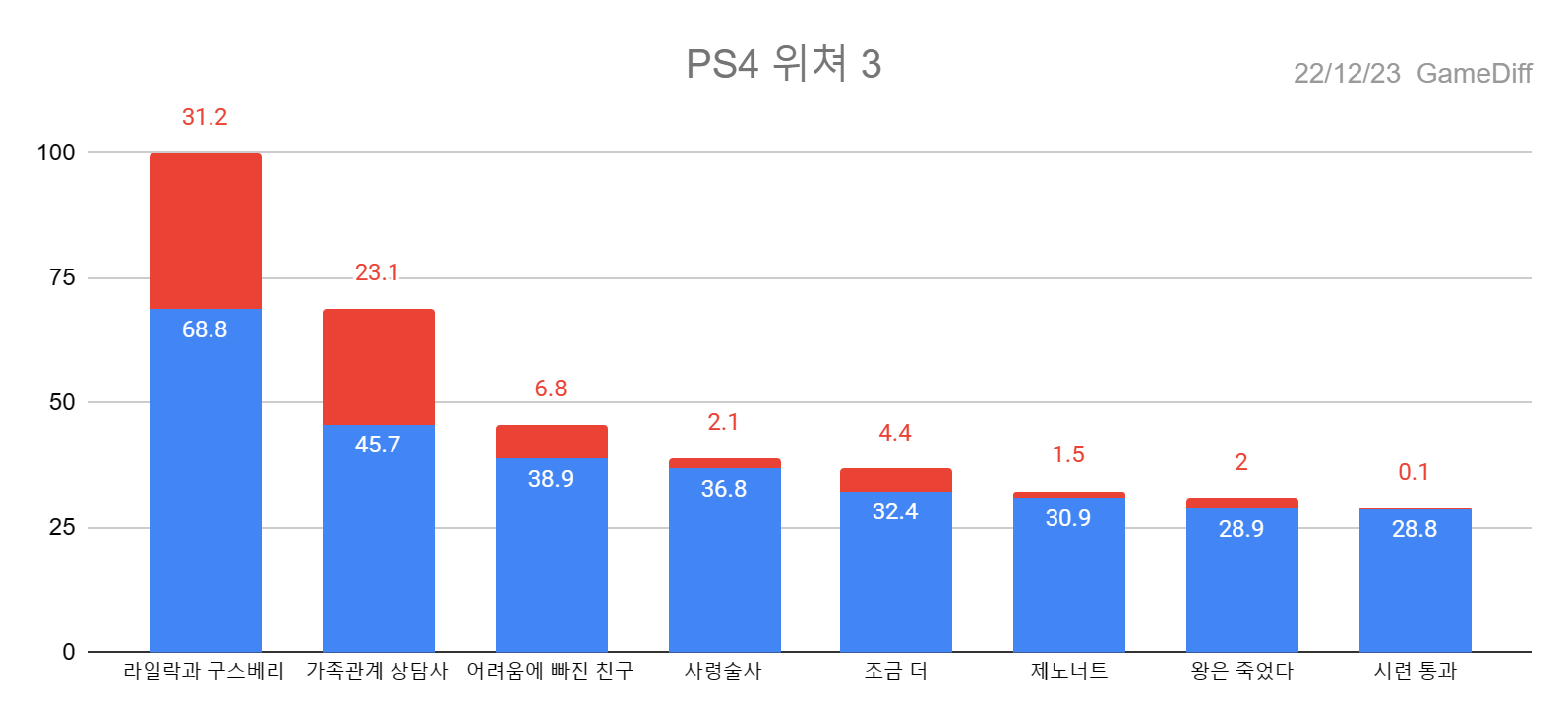*psnprofiles에서 psn 자료를 갱신한 시점 혹은 제가 데이터를 확인한 시점에 따라 실제 psn 값과 차이날 수 있습니다.