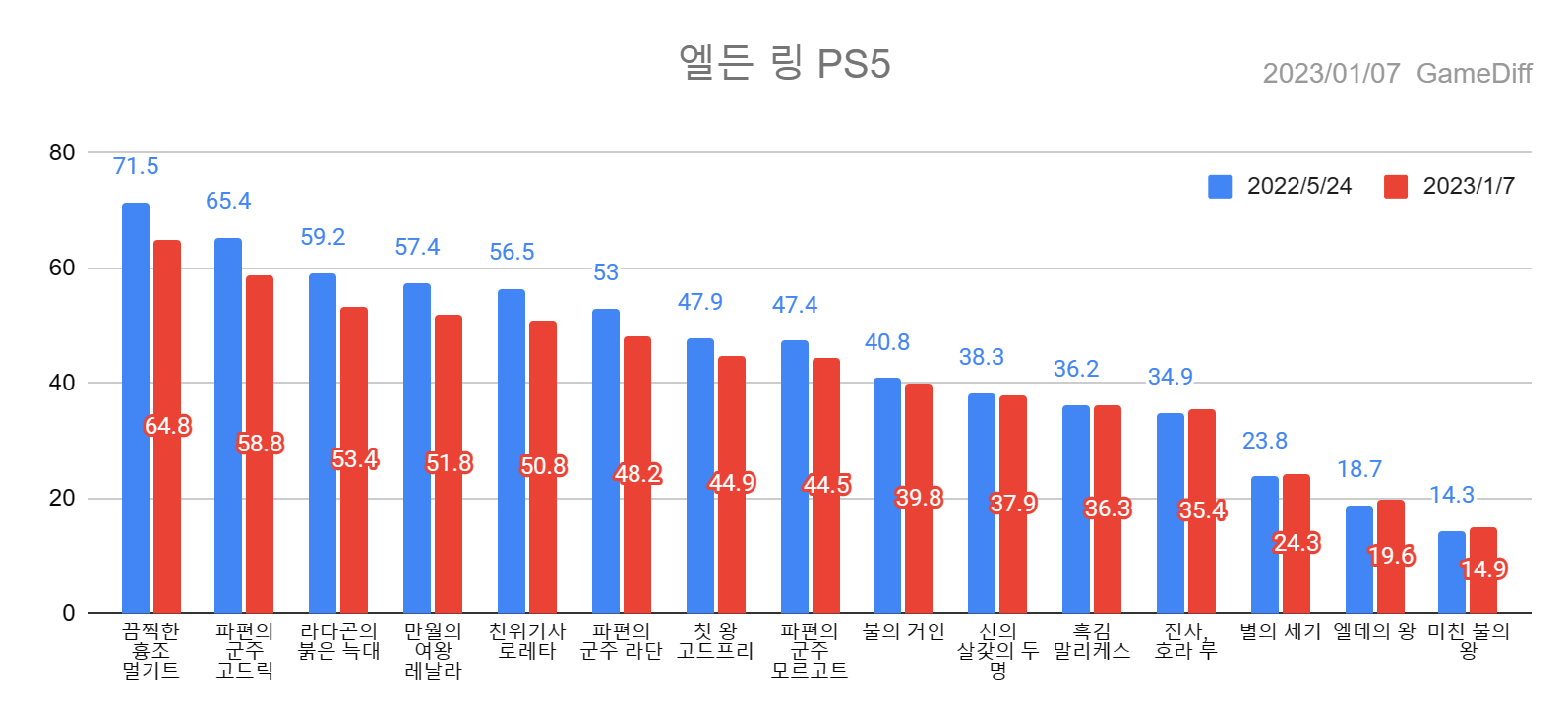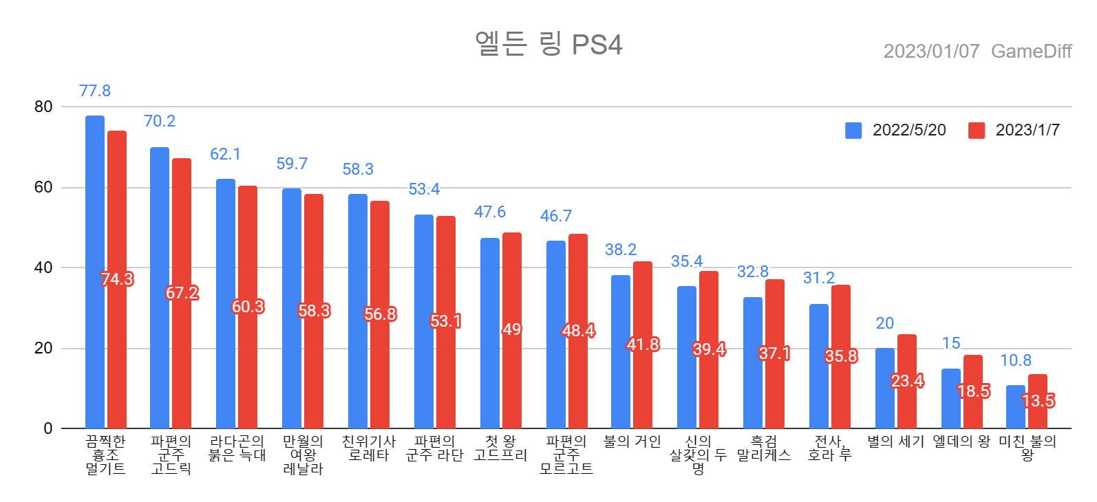 [게임 정착과 이탈] 2022년 출시작 23종 엔딩 비율 총정리 - 역시나 엘든 링의 해 :: GameDiff (tistory.com)