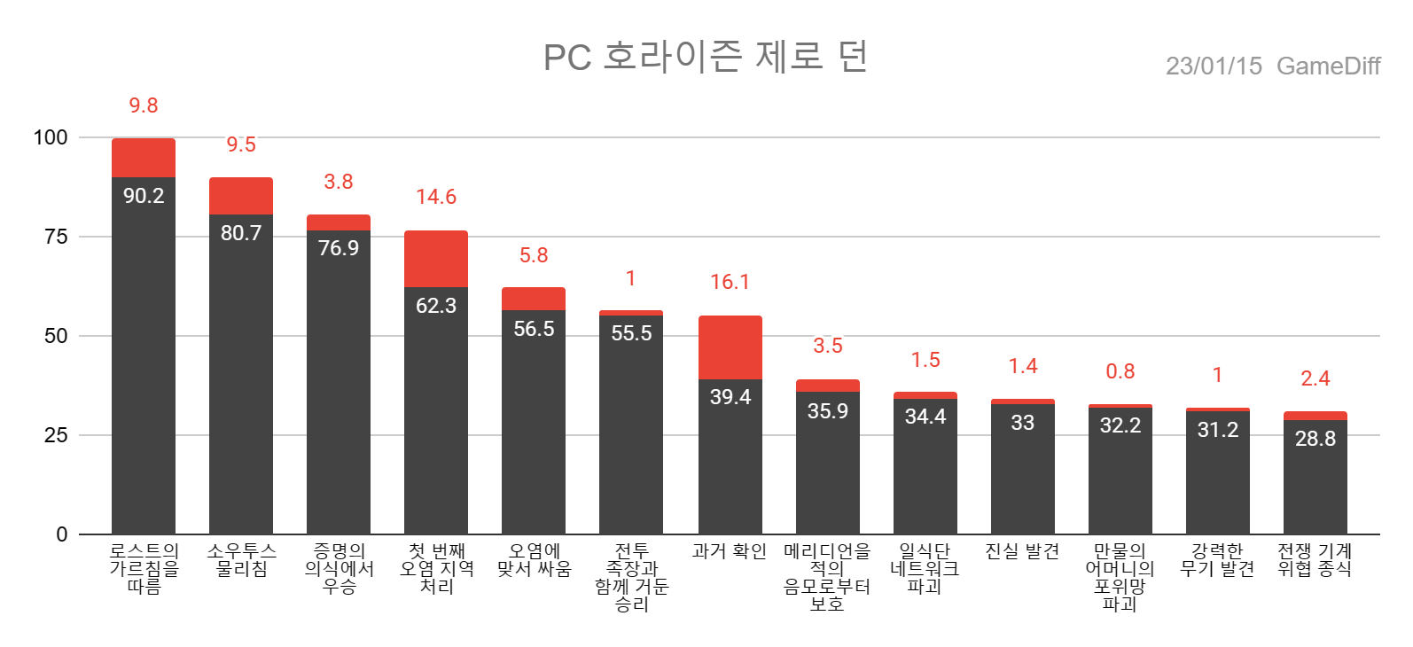 *차트의 세로축은 해당 업적(도전과제/트로피)의 클리어 율을 의미합니다.