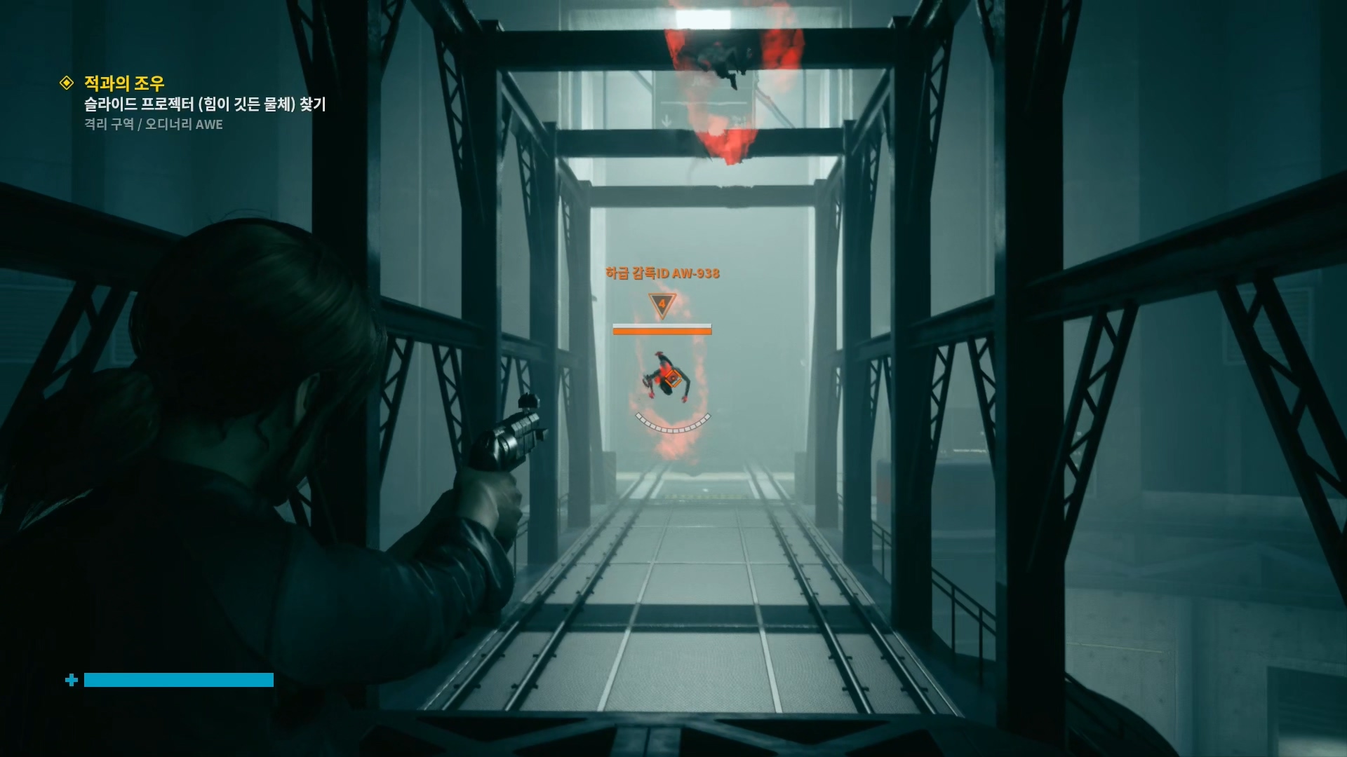 임무 2 구간에서는 일종의 보스전이 있습니다. 나중에는 얘도 엘리트 몹 정도로 쓰이긴 하지만 여기서는 보스전입니다. 이 전투가 좀 까다롭습니다. 주변에 폭발물이 많아서 폭발 때문에 순간적으로 죽는 경우가 많이 나오고, 보스에게 그냥 총을 쏘면 계속 피하기 때문에 맞추기 힘들어서 공격을 준비하는 동안에만 쏴야 합니다. 총을 맞춰야 하는 타이밍을 알면 할만하지만 모르면 쟤는 왜 자꾸 피해? 뭐 이런 생각이 들죠. 전투 어려움 때문에 이탈할 수도 있을 것 같네요.