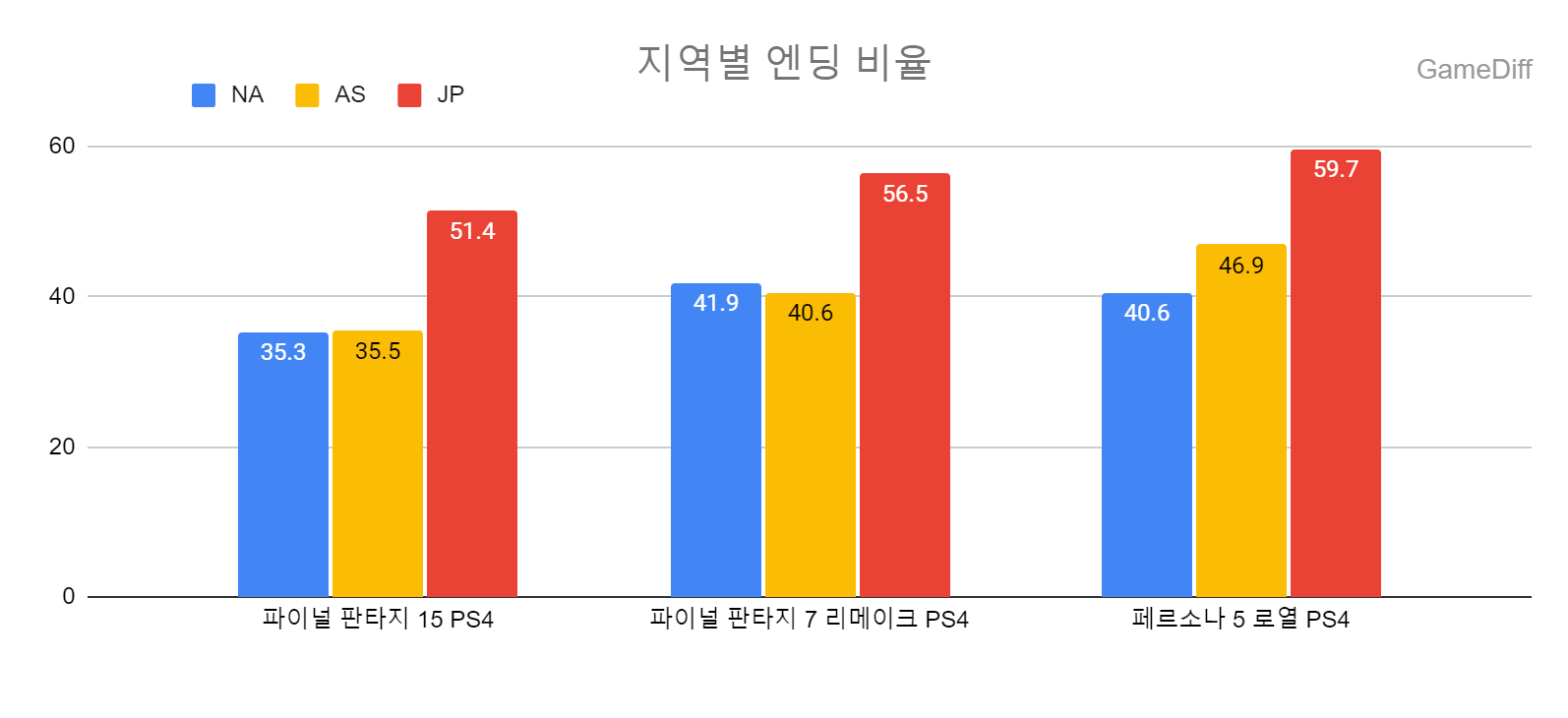 상당히 놀랍네요. 일본 지역의 엔딩 보는 비율이 다른 지역에 비해 많이 높습니다.