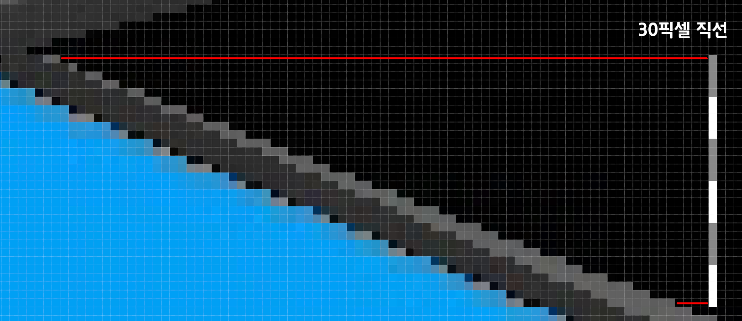 자꾸 픽셀 픽셀 그러면 헷갈리는데, 그냥 대각선의 계단만 구분해서 보시면 됩니다.