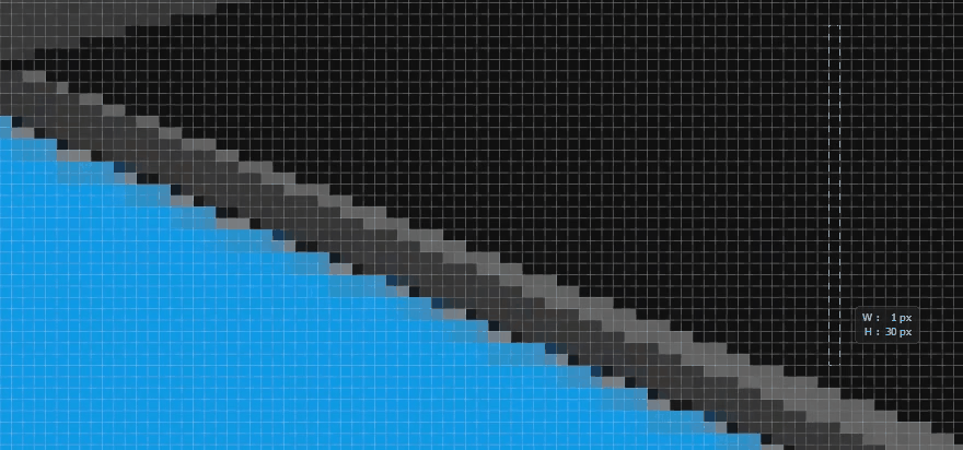 글로 쭉 풀어서 쓰니 복잡하게 들리는데, 대각선을 찾아 확대해서 픽셀을 찾고 그 대각선에 맞는 30픽셀짜리 선을 긋는겁니다. 요약해도 복잡하네요... 밑에 이미지를 봐주세요.