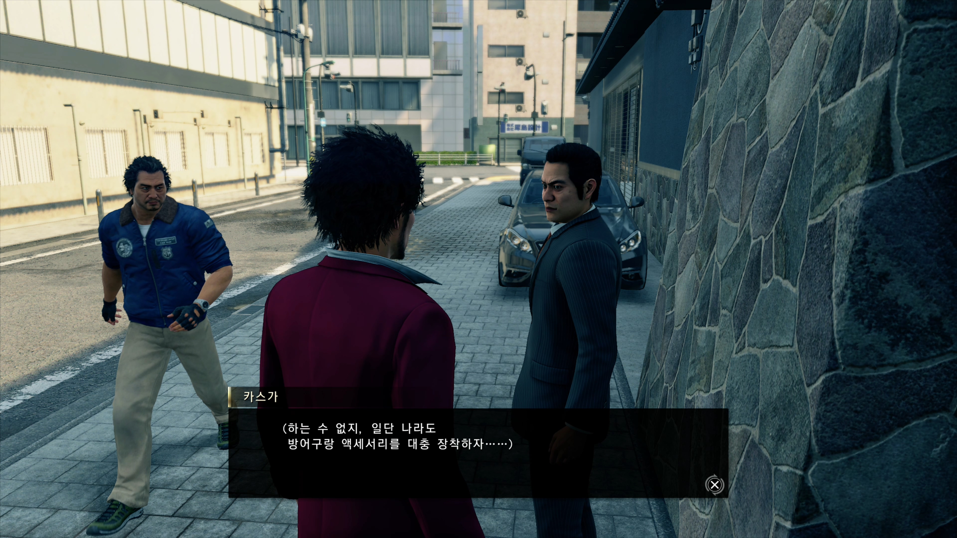 4장 플레이 중에 저기 야쿠자 건물로 들어가야 하는데, 들어가려고 말을 걸면 준비가 부족하다고 하고, 방어구와 악세를 끼고 오자고 합니다.