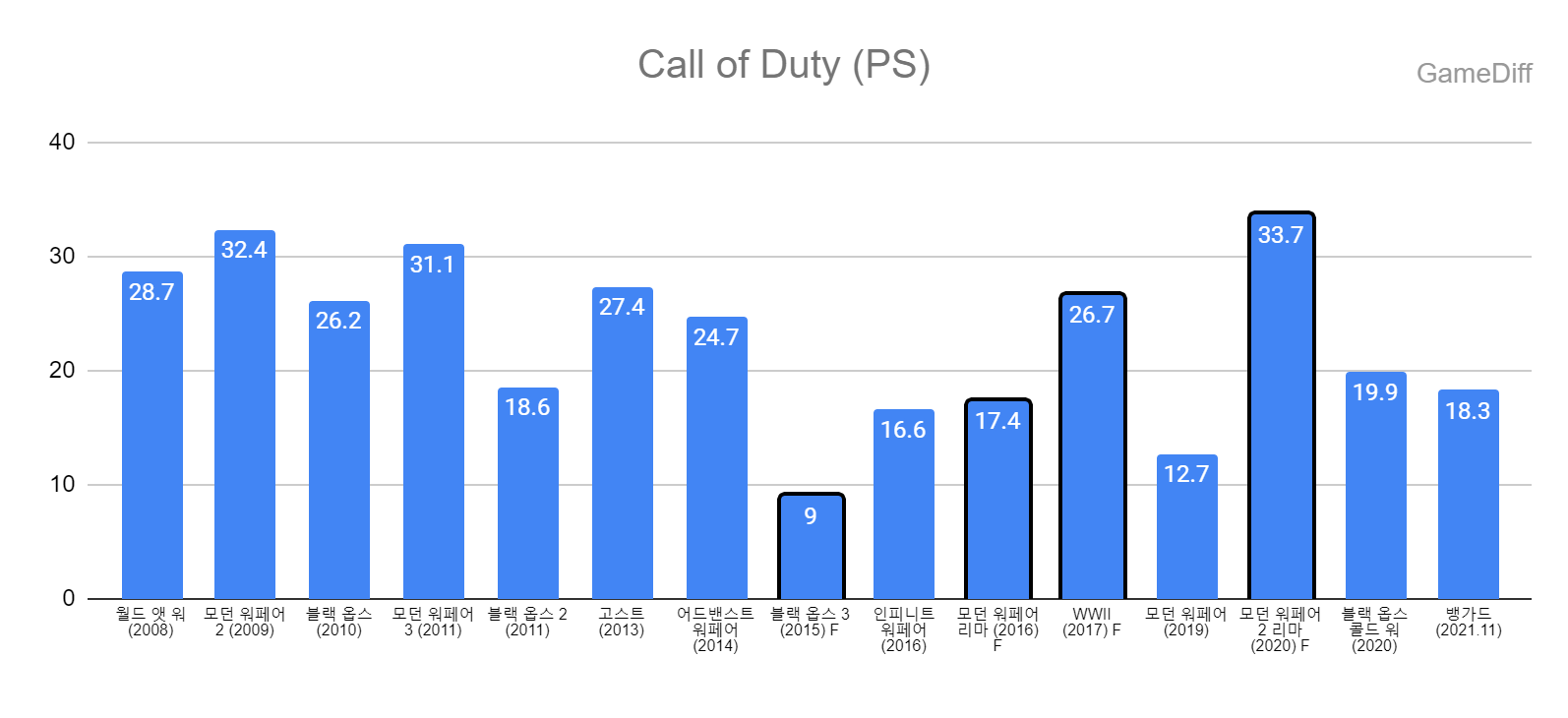 [게임 정착과 이탈] 콜 오브 듀티 시리즈 엔딩 비율 변화 (2008 ~ 2021 / 월드 앳 워 ~ 뱅가드) :: GameDiff 게임 분석 (tistory.com)