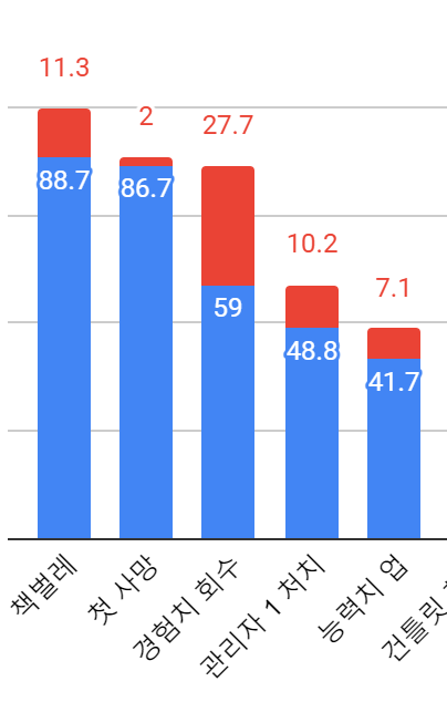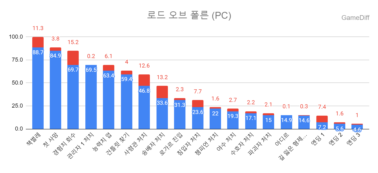 *차트의 항목 명칭은 업적 명칭을 그대로 쓴 것도 있지만 업적 명이 길어 다르게 적은 것도 존재합니다.