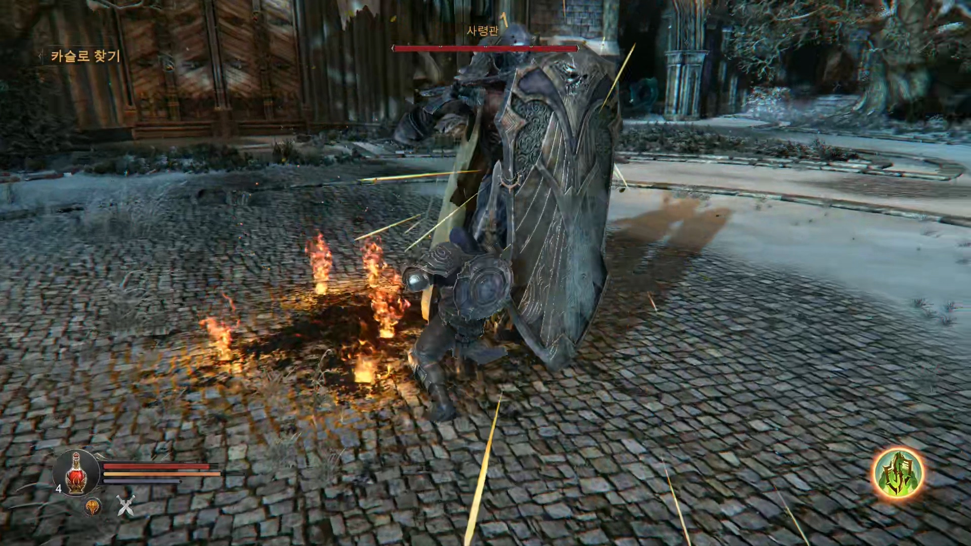 그래도 방패 든 놈을 극복하면 3 보스는 금방 만날 수 있습니다. 근데 이 3 보스가 좀 까다롭습니다. 원거리 공격도 있는데다 전체 공격도 있습니다. (멀리 벗어나면 안 맞는지는 확실하게 모르겠지만 제 체감 상 피할 수가 없었으니 그냥 전체 공격이라고 하겠습니다.)