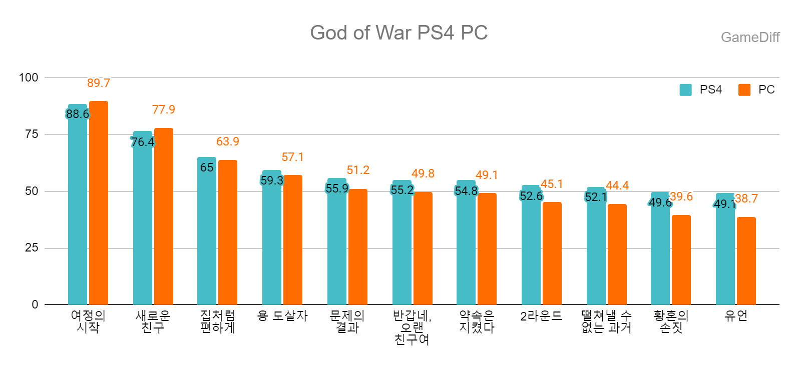 보통은 피씨, 그러니까 스팀의 엔딩 비율이 플스보다 높았는데, 그 경우는 대부분 동시 발매였기 때문에 갓 오브 워가 어떨지는 잘 모르겠습니다. 판매가 2천만장이었던가? 그 정도에 무료 유저도 있으니 해볼 사람들은 다 해본 시점이 아닐까 싶기도 하거든요.