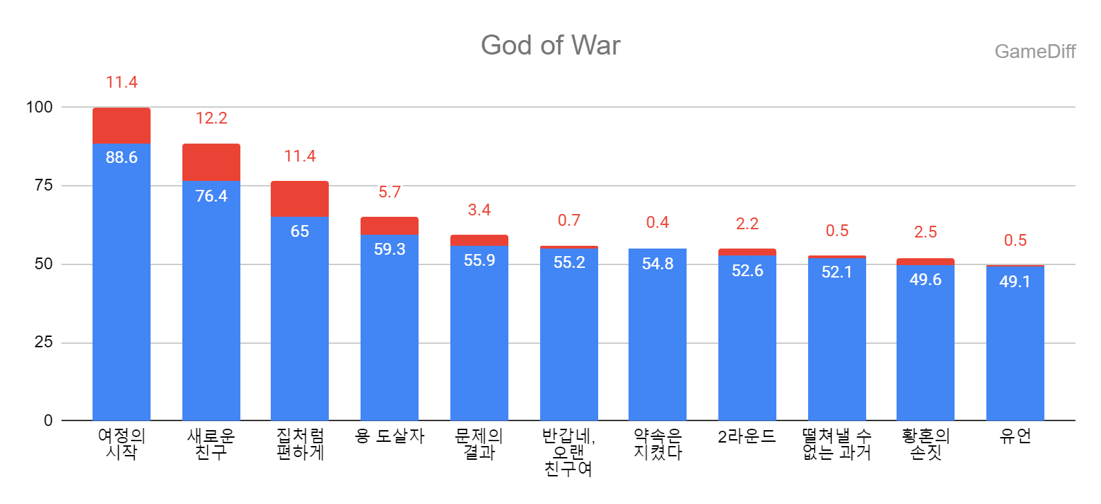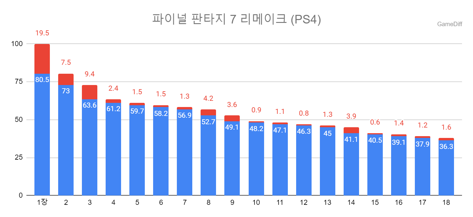 일자형 게임인 파이널 판타지 7의 경우 1장 분량이 대략 30분 정도의 분량인데 여기서도 20% 정도가 이탈을 했습니다. 갓 오브 워도 2시간 정도의 분량이라면 <새로운 친구> 까지인데 여기까지 24% 정도의 이탈이니 크게 차이가 나는 수준은 아닙니다. 엔딩 비율이 높은 고스트 오브 쓰시마도 1시간 정도 되는 분량까지의 이탈률이 20% 정도였습니다.