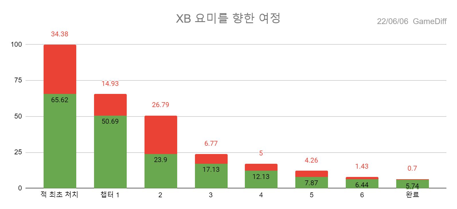 이 게임의 챕터 1까지의 이탈률은 15% 정도 밖에 안 됩니다.