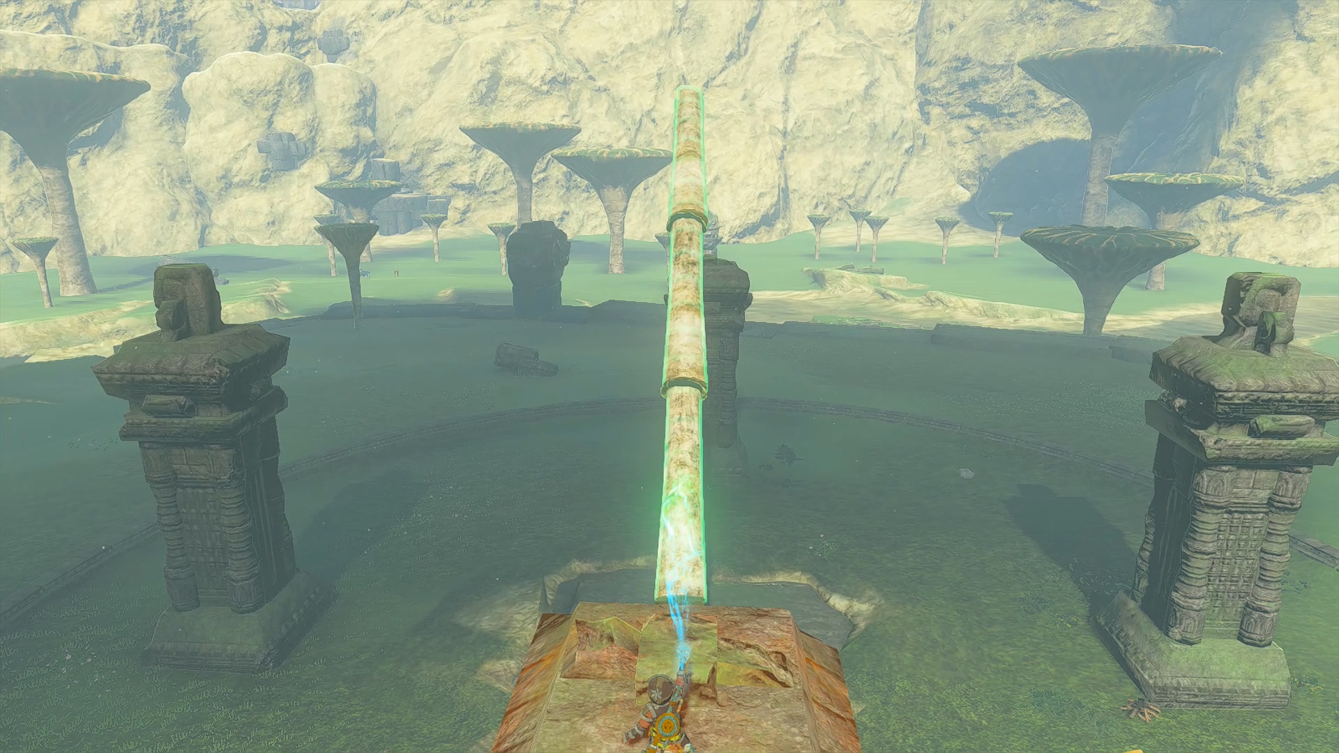 저기 기둥의 발판(화살표)을 밟으면 동굴 입구가 열립니다.