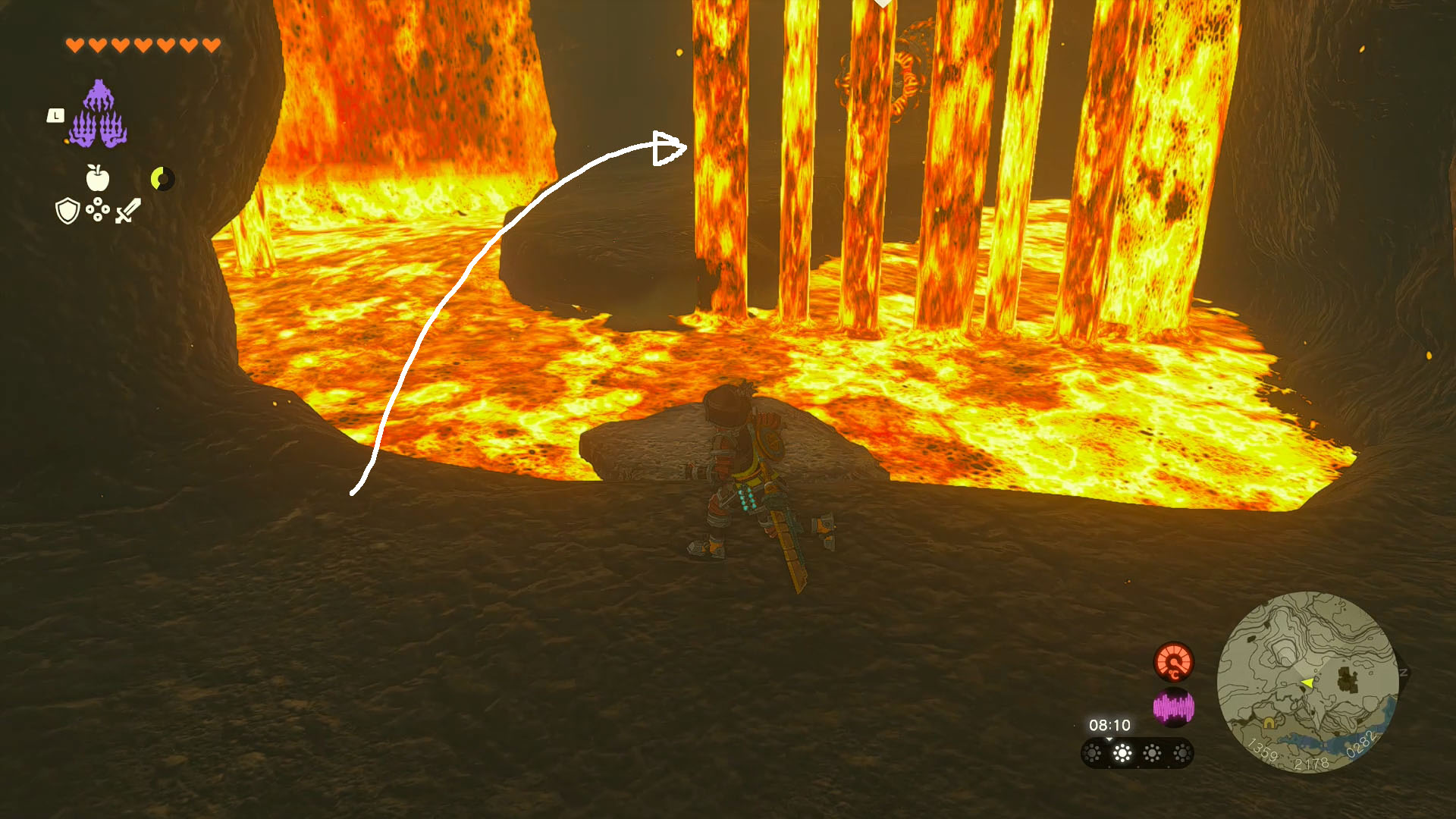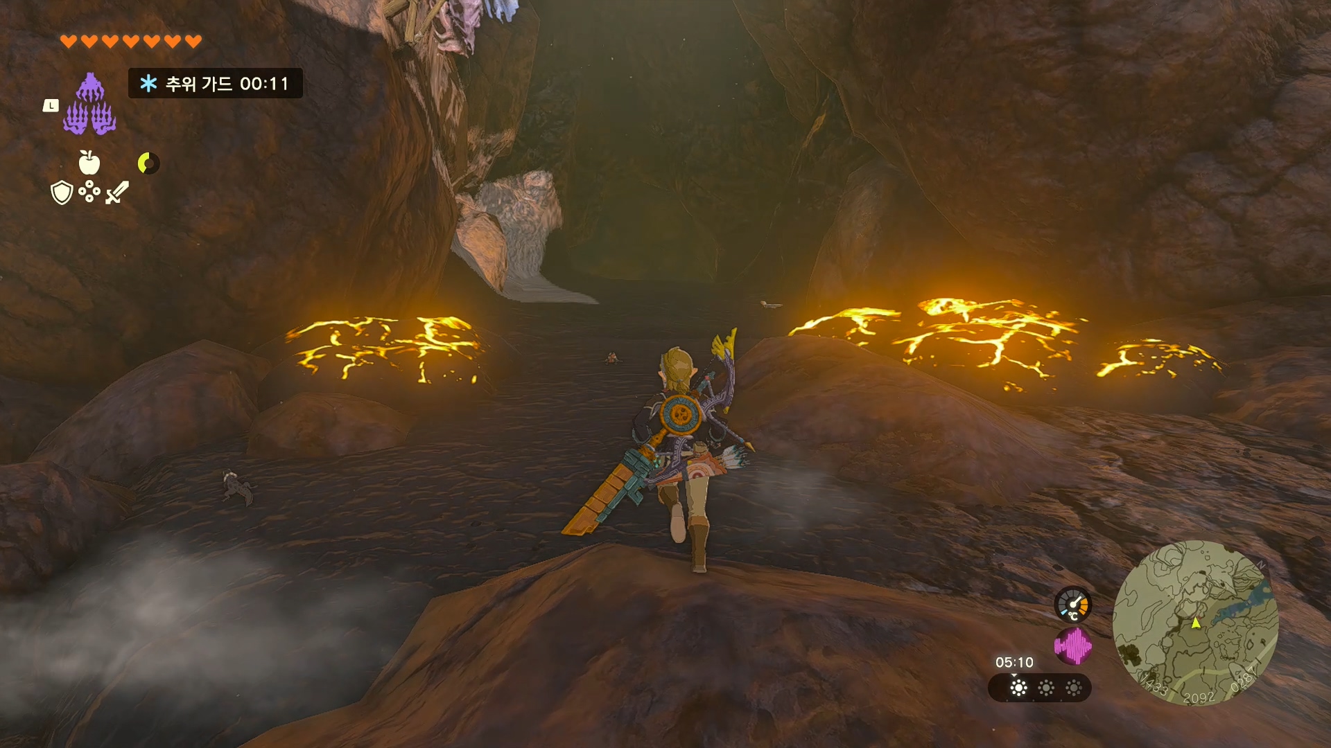 용암 건너갈 때 발판 부족하면 화살에 물열매나 츄츄 젤리가 주던거 뭐더라? 여튼 그거 달고 용암에 쏘시면 됩니다.